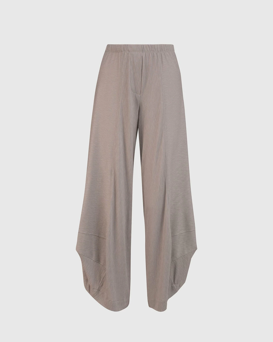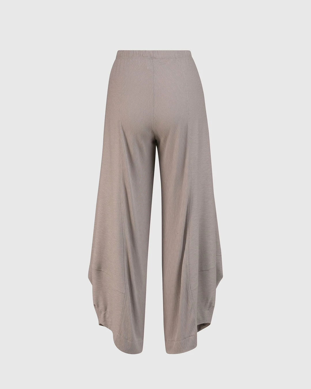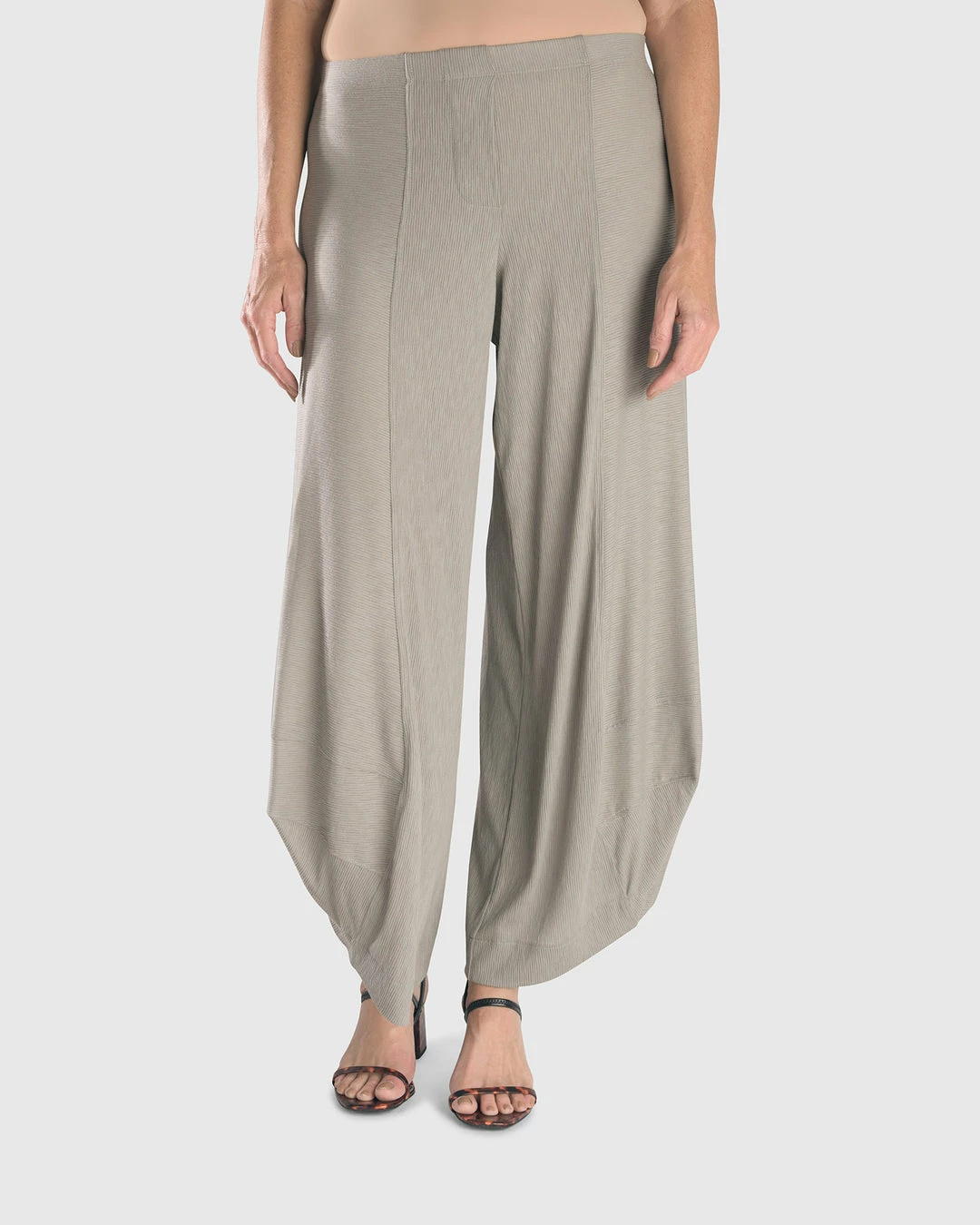 An Alembika favorite and signature silhouette, the punto pant style has seam detail ballooned legs with faux fly detail at elastic stretch pull on waist. In a ribbed textured knit, these are comfortable and sophisticated.
