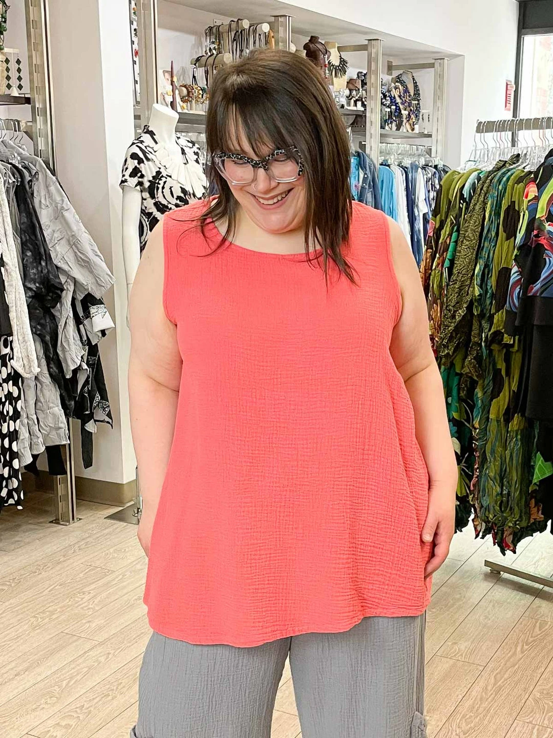 Bryn Walker’s Pira Tank is the perfect layering piece, with a longer length straighter a-line body and round neckline.