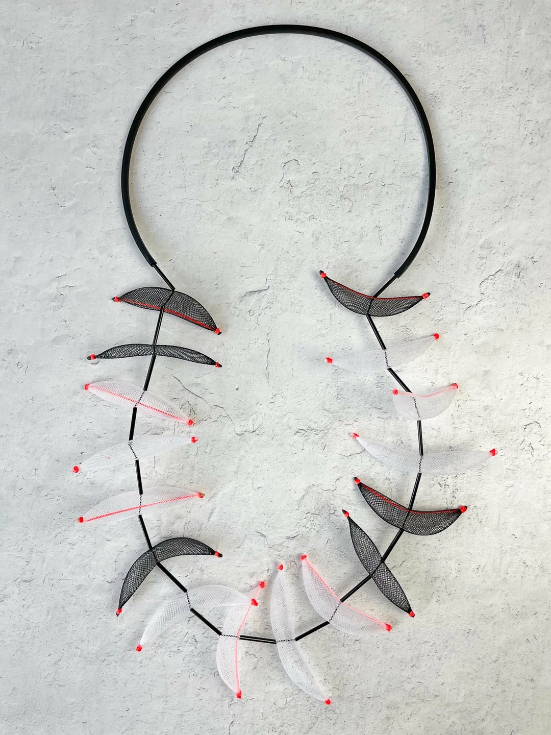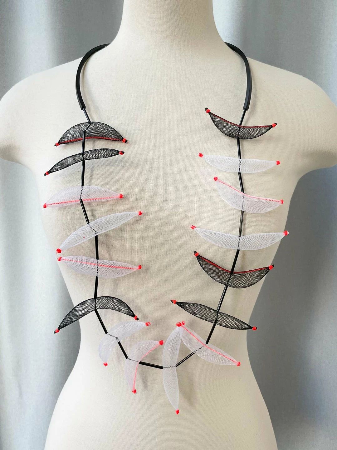 Christina Brampti Tulle Pod On Rubber Cord Necklace, Black/White/Orange