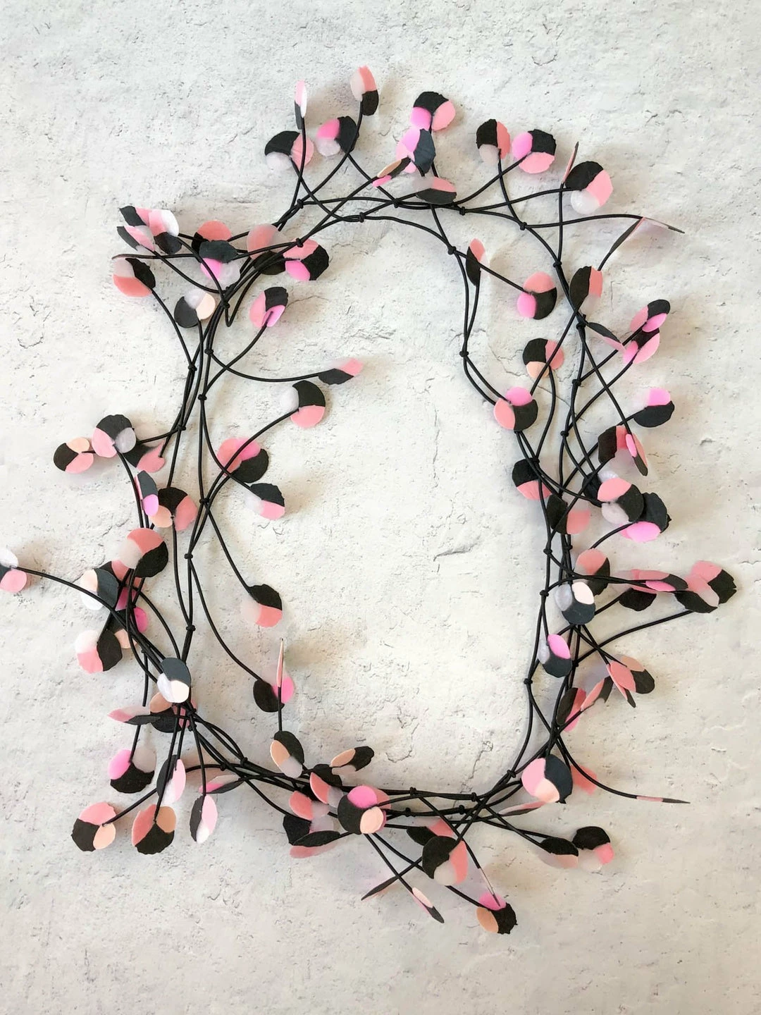 Rounded multi colored “petals” are knotted on long stretch cord, making this a versatile piece. Wear long, doubled up or tripled as a collar – even wrap around the wrist as a bracelet. Have fun layering multiple styles and colors to create a truly unique look!