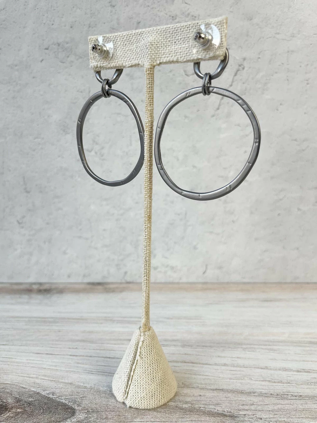 Escape From Paris Hammered Circled Drop Earrings, Matte Gunmetal