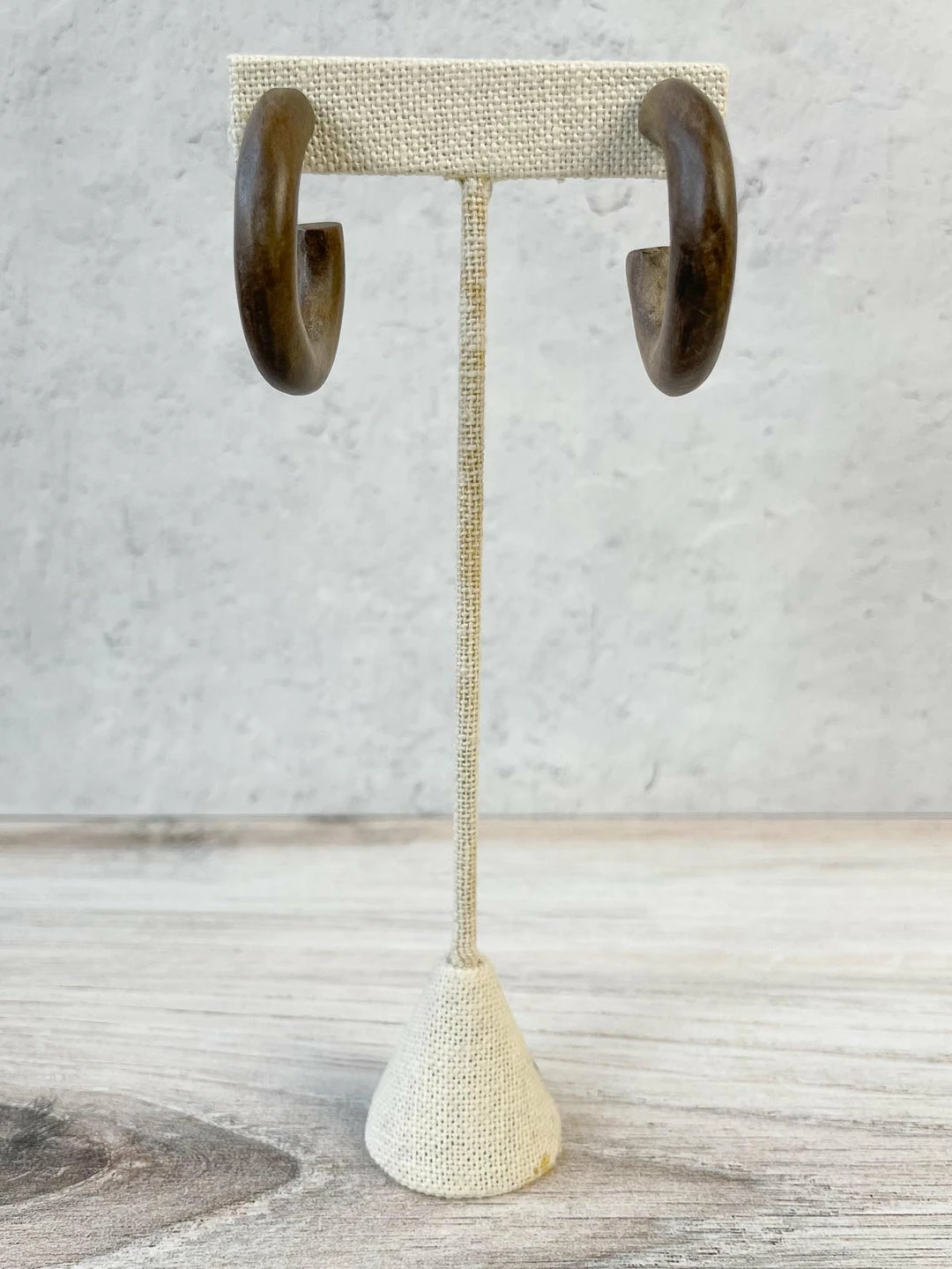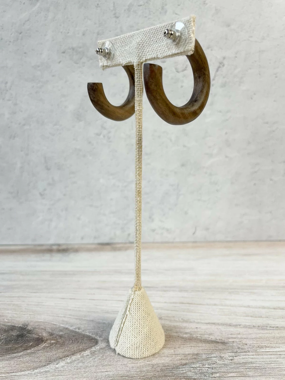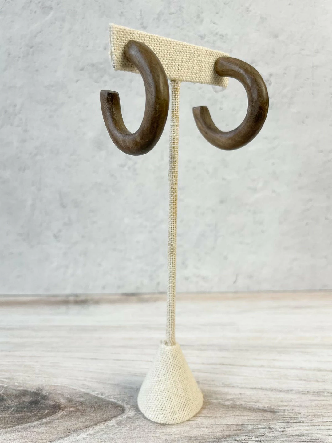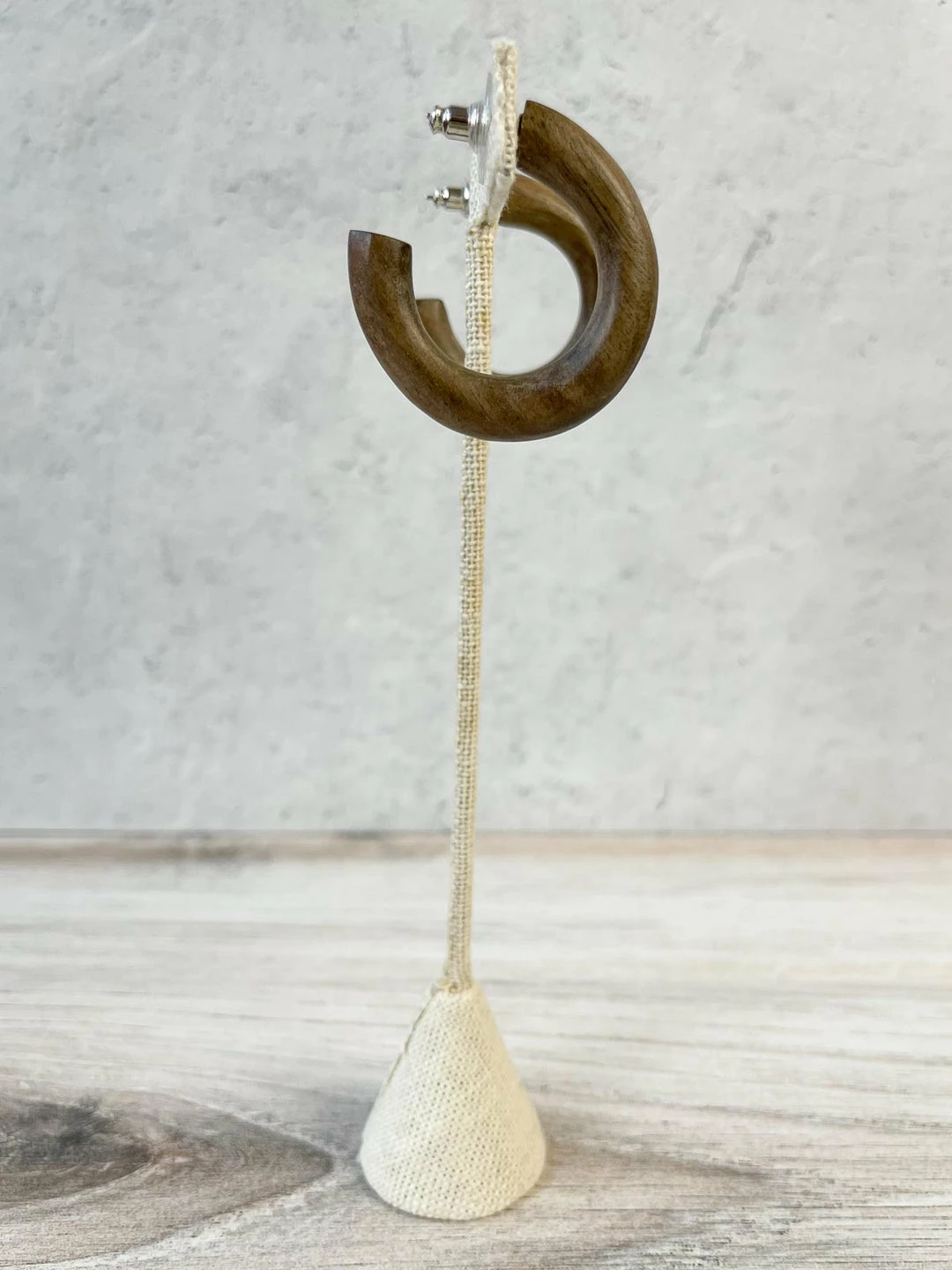 Escape From Paris Wooden Hoop Earrings, Dark Natural
