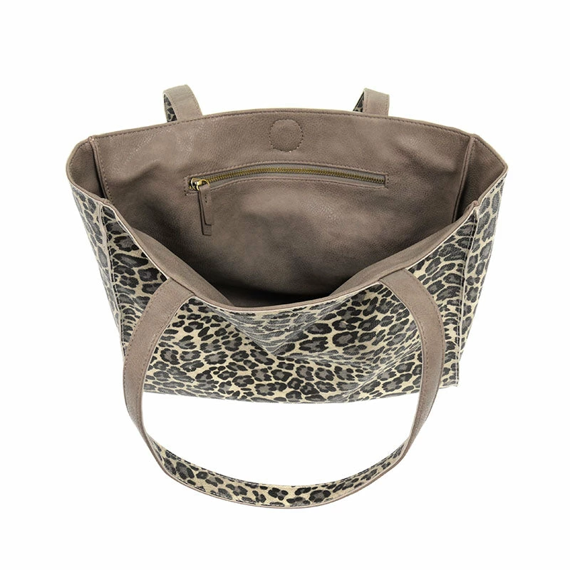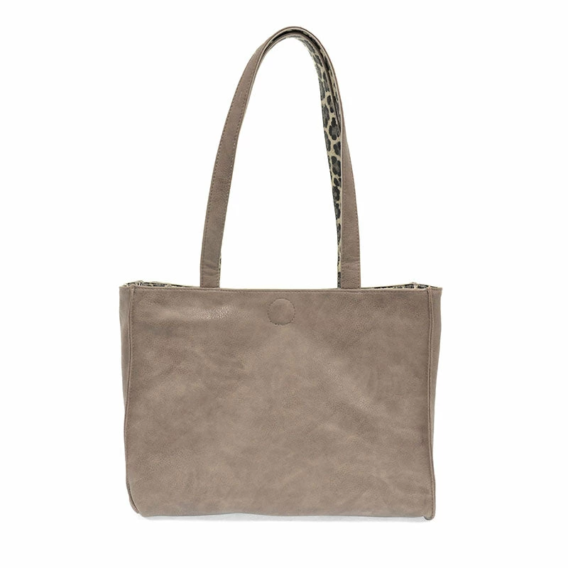 Two looks in one! Switch up your daily look with this fully reversible tote. With a solid color in soft pebbled vegan leather on one side that reverses to a fun fashion print on the other, you can easily change your look from work to play!