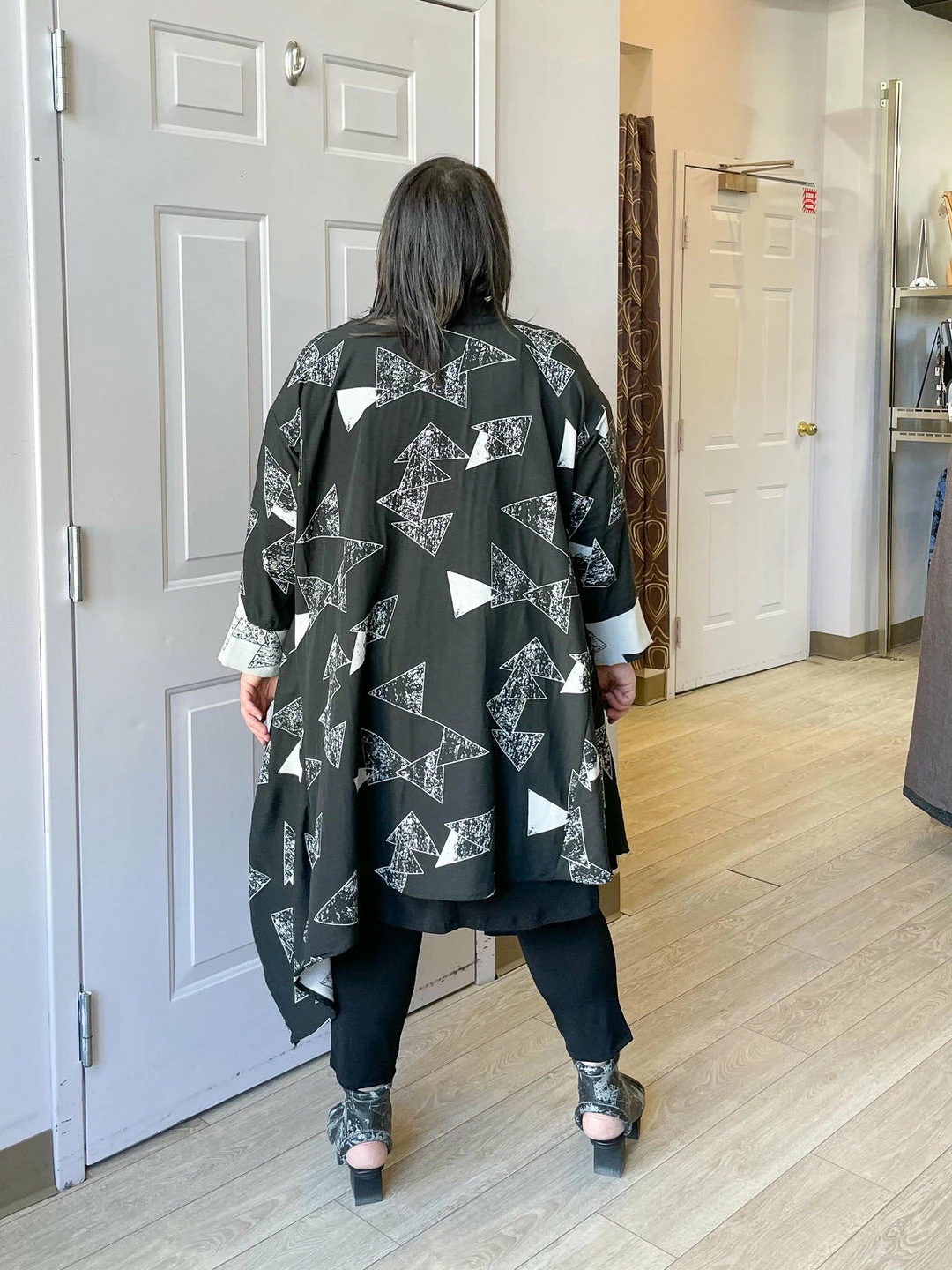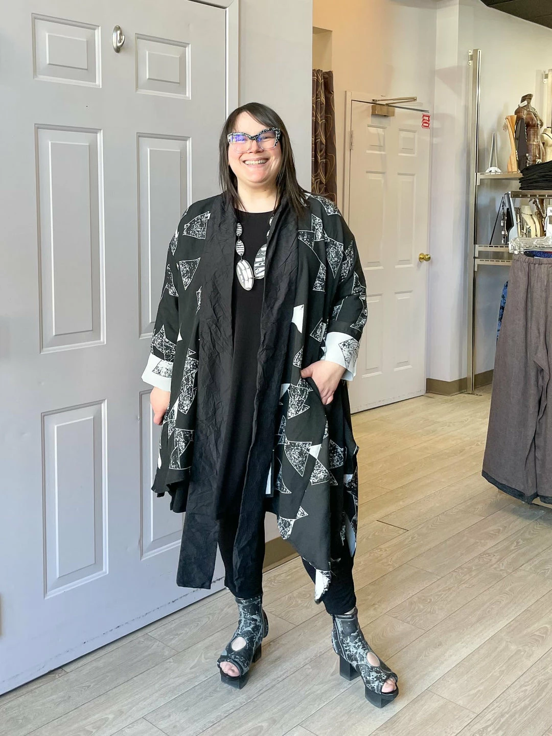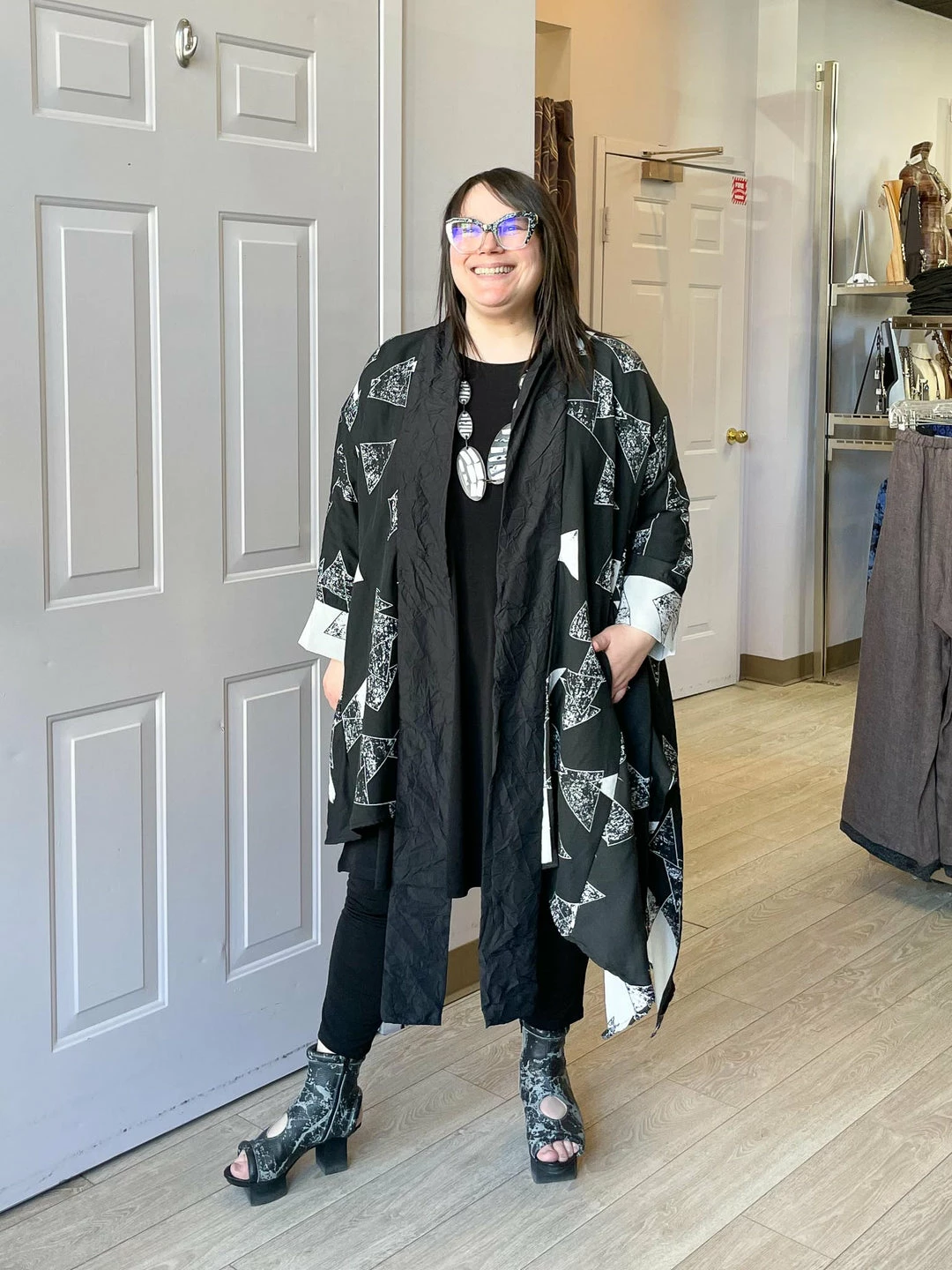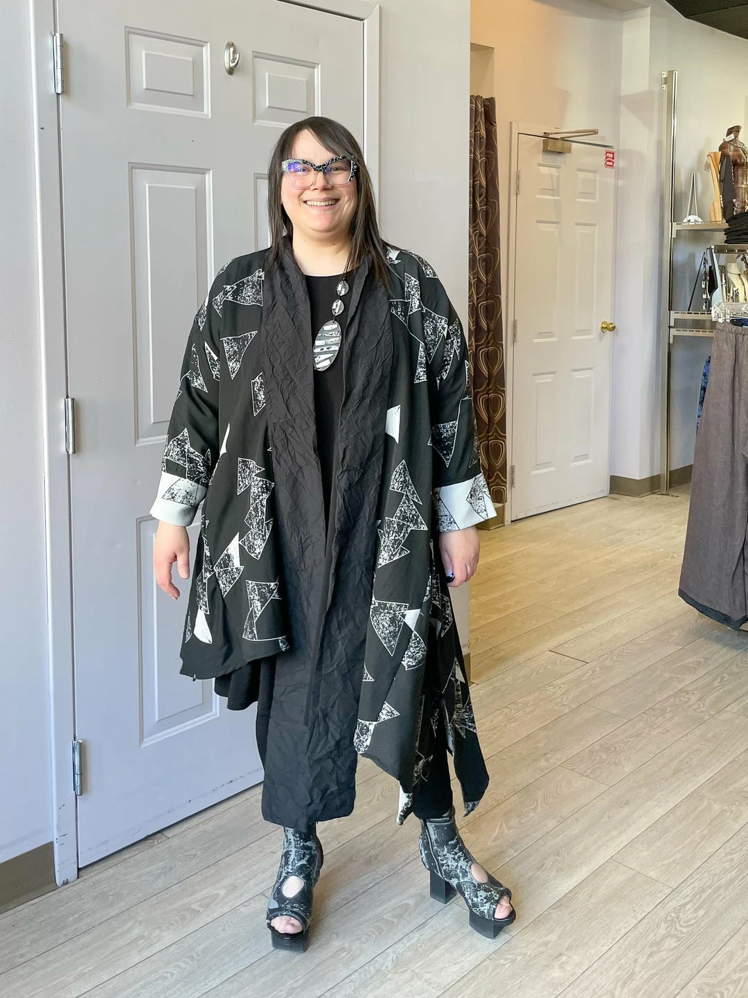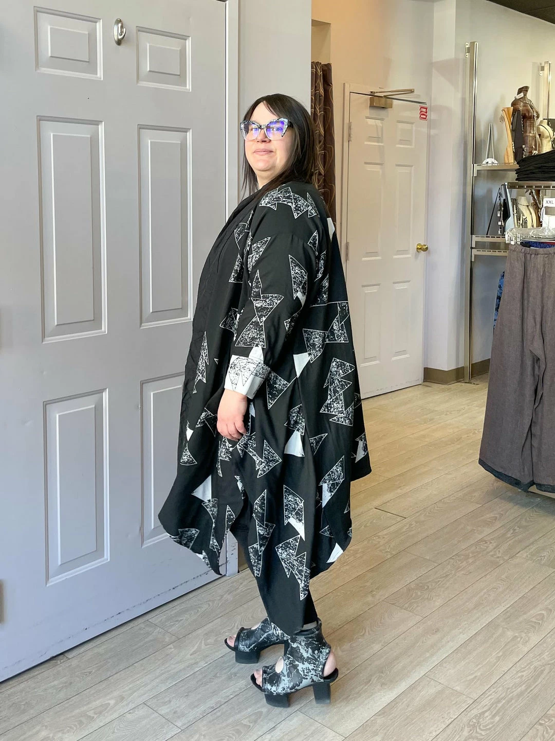 Andrea (size 14/16, 5’3″) wears size One Size.