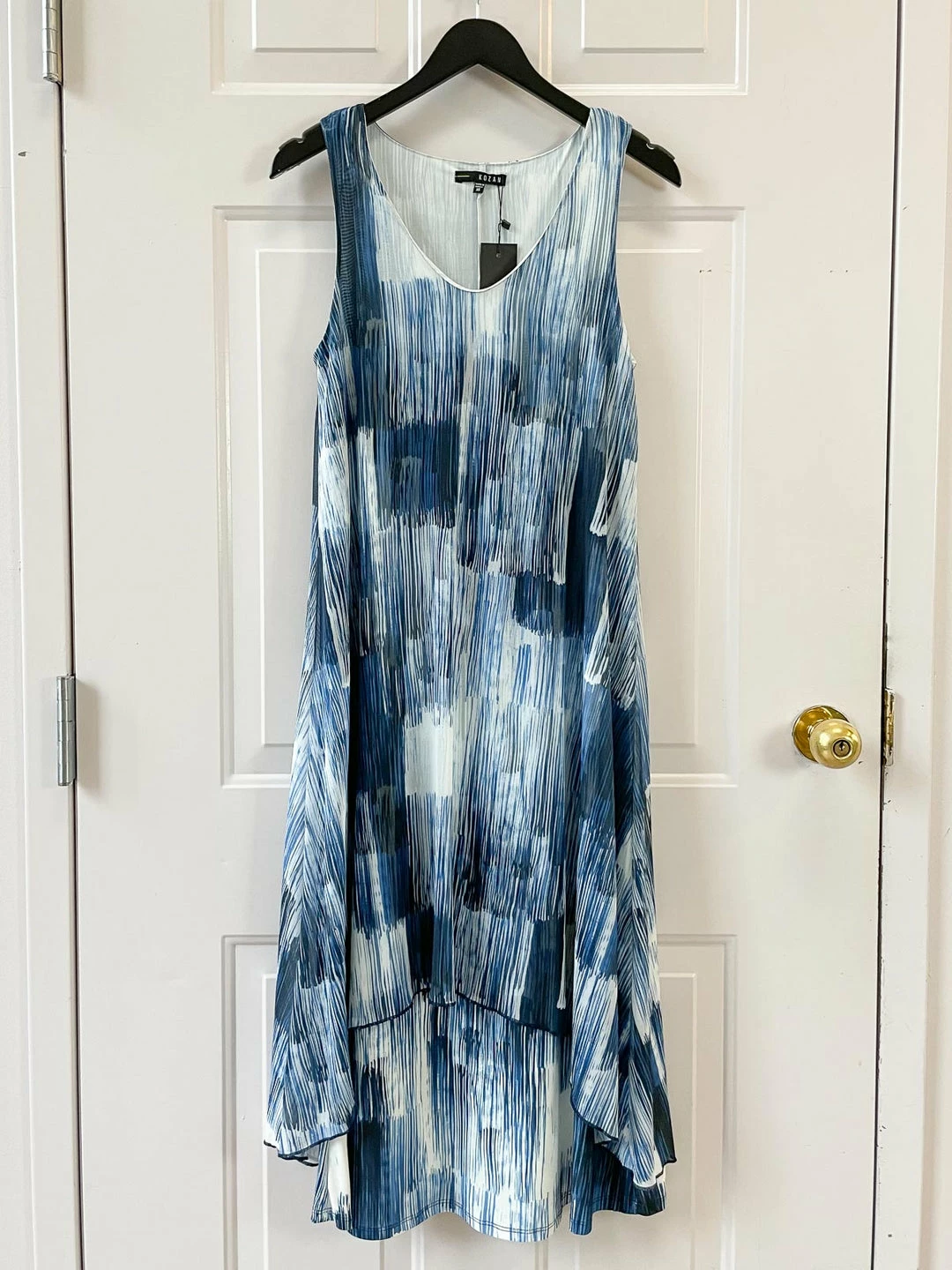Kozan’s layered Millie Dress has a midi length a-line body in stretch jersey knit, with an attached mesh overlay that shows off an stitched edge high low hemline. Along with a soft v neckline, it’s details make it easy to be dressed up or down as you’d like. We love popping Kozan’s Mila Topper over (or under), to add a sleeve.