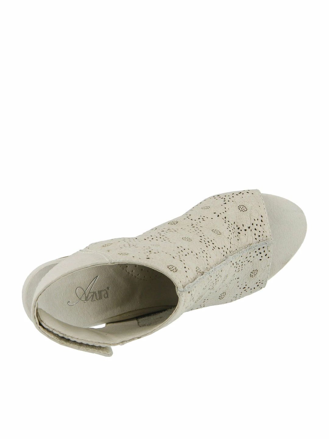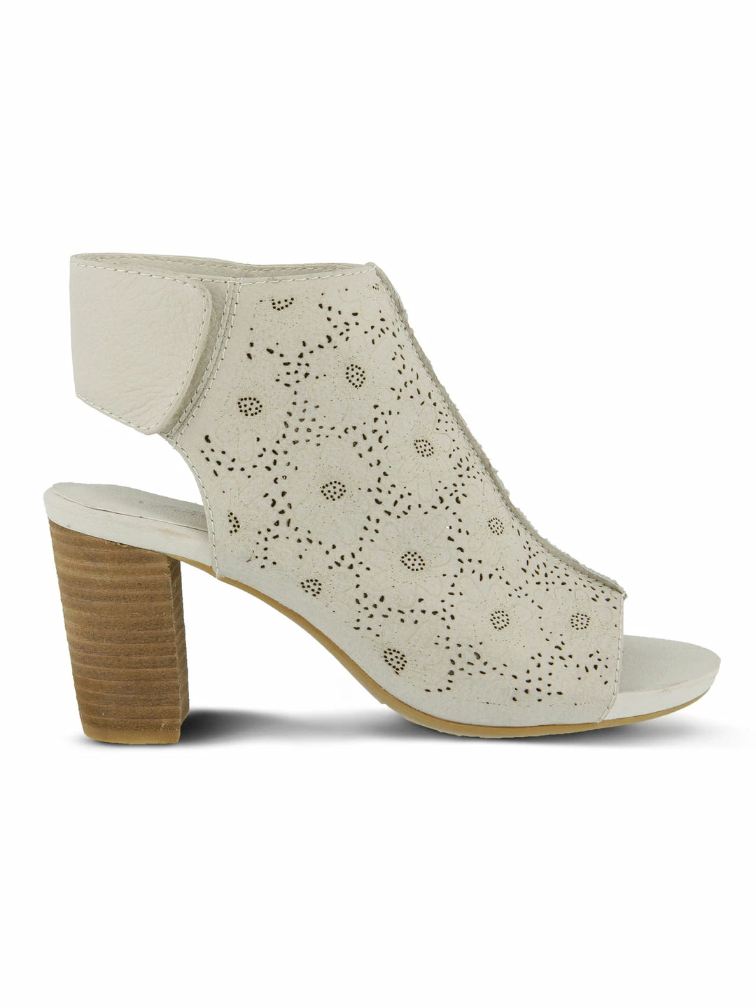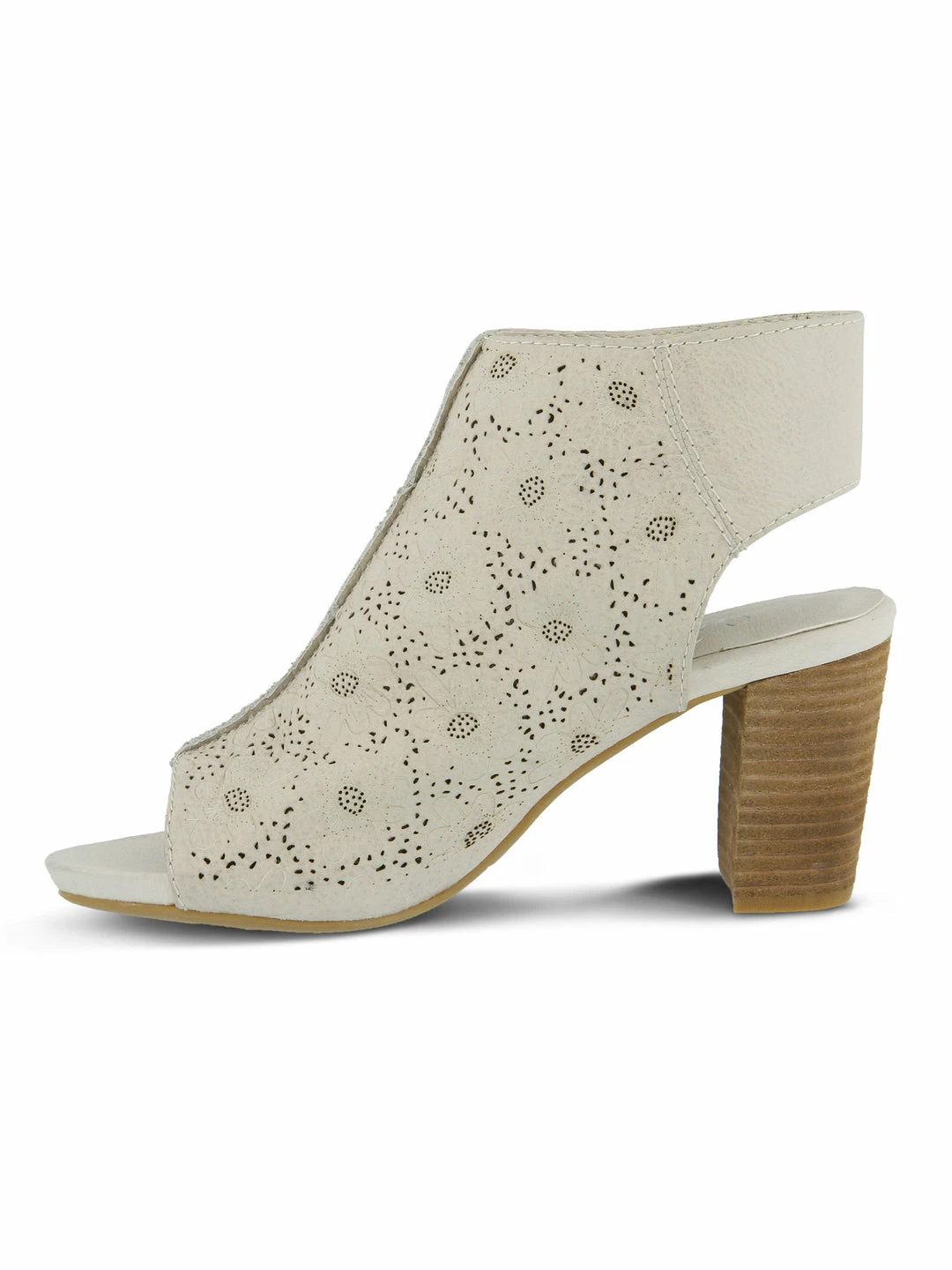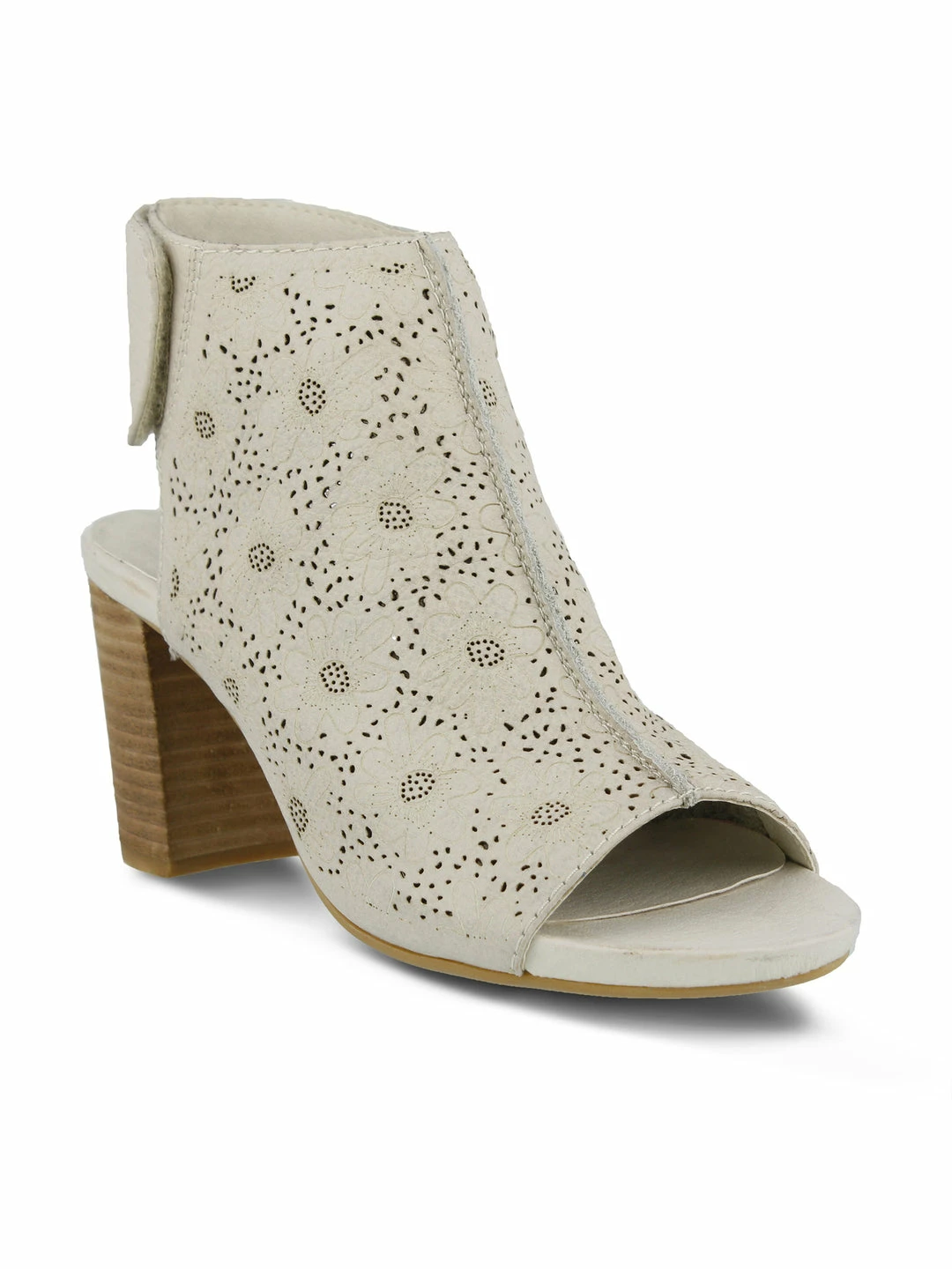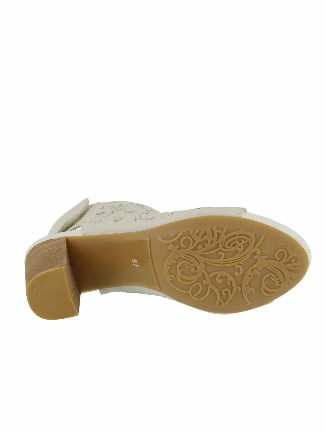 French inspired designed, high quality and full grain, leather upper that is naturally soft, light, and breathable. Nature inspired back strap sandal with laser cutouts and etching leatherwork, with a hook and loop closure. Both trendy and fashion forward, with adjustability for custom fit. Excellent comfort for your feet with soft, supportive, cushioning with color matching insole. Rubber outsole with a stacked wooden heel for great traction in any weather.