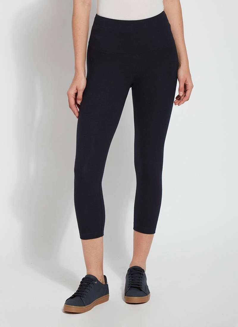 Showcasing lean lines and crafted from stretch cotton, Lyssé’s Flattering Cotton Crop Legging are like yoga pants, only better! They offer pull-on styling, anatomical seaming that lifts and contours, and a wide concealed waistband. Partner these cotton leggings – perfect work-from-home loungewear – with a simple tank or dress up with your favorite tunic.