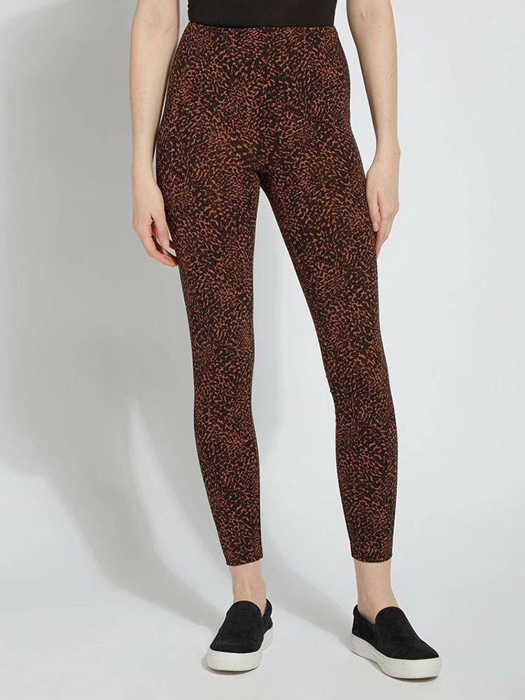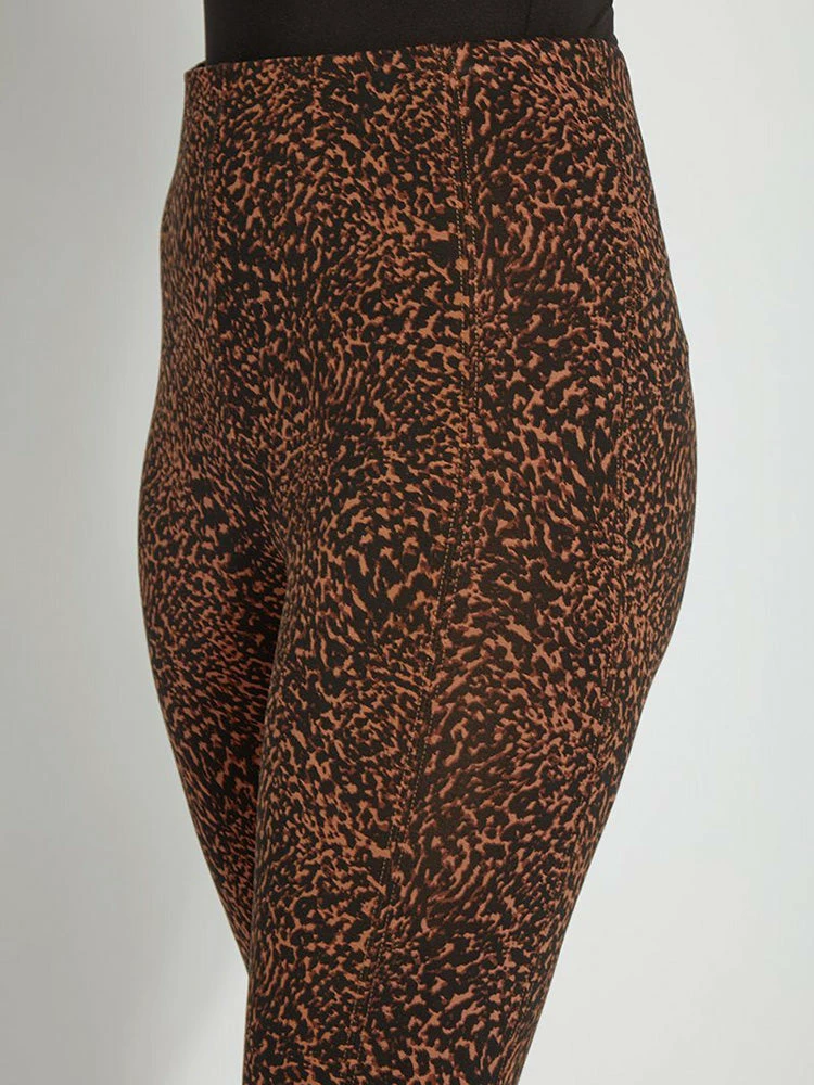Showcase these urban-inspired Ponté leggings for everything from errand running to enjoying coffee with friends! The timeless Printed Laura Legging, in Tortoise Print, features a concealed patented waistband that smooths and shapes; body-hugging comfort for all-day wear; and anatomical seaming for rear contouring and lift.Â