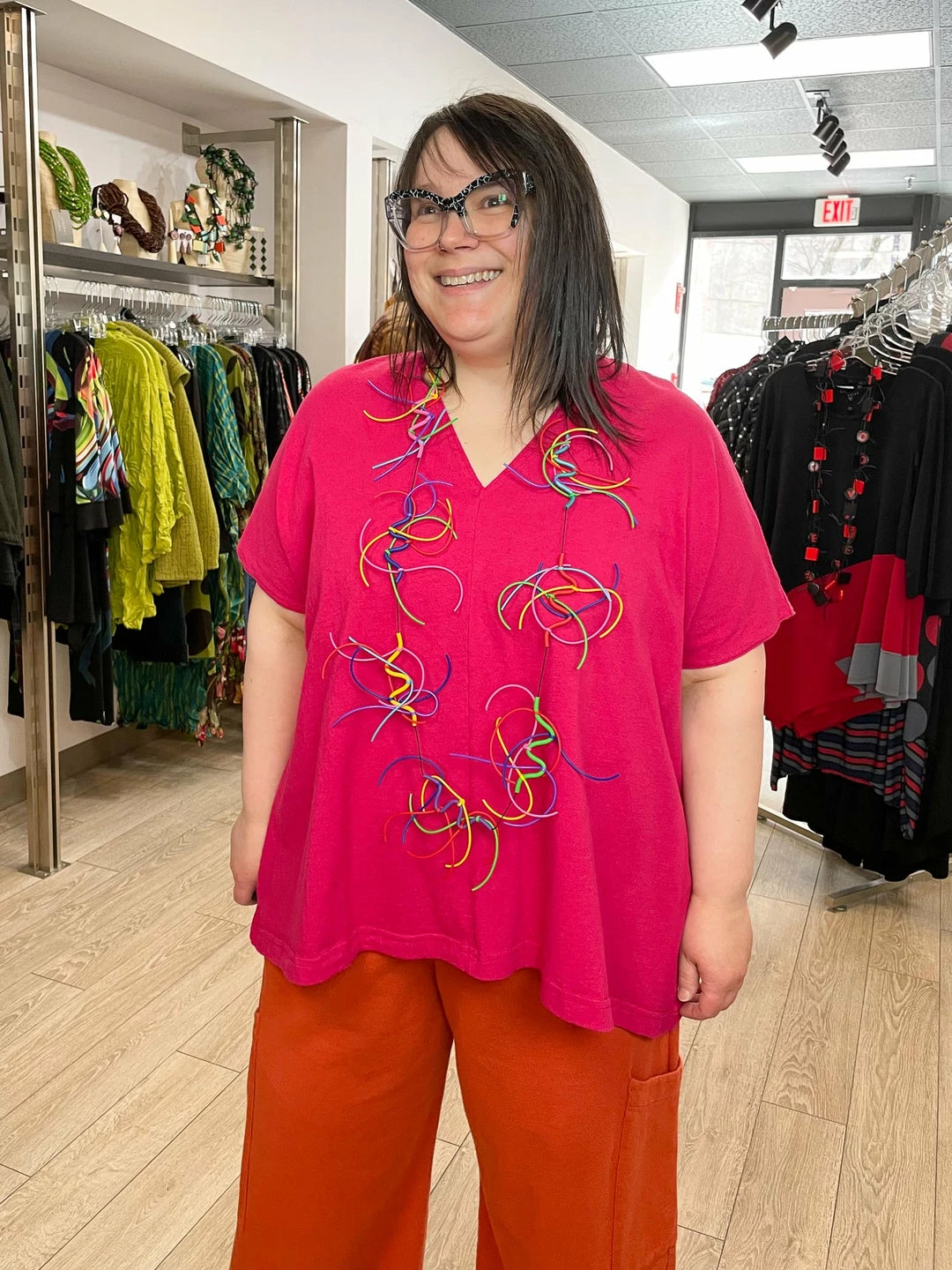 Bryn Walker’s Baxter Shirt is a signature silhouette, with an oversized body that features a vertical center seam leading to a flattering v neckline. The short dolman sleeves complete the look.
