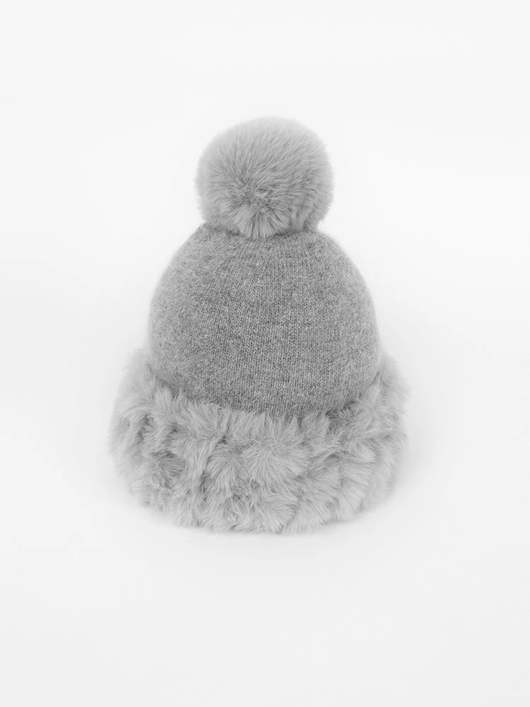 The Bailey Hat is ready for the cold weather whether you’re in the city or country and has all the makings of a winter classic. This soft, knitted fabric beanie hat looks classic and urban-chic for the season. Get ready to embrace the cold while you luxuriate in the warmth of its wide faux fur cuff trim. A matching grey mid-sized faux fur pom pom tops off this hat rounding off its wintery good looks. Plush, luxe, and easy to keep handy in your handbag for whenever the cold strikes or the weather turns.