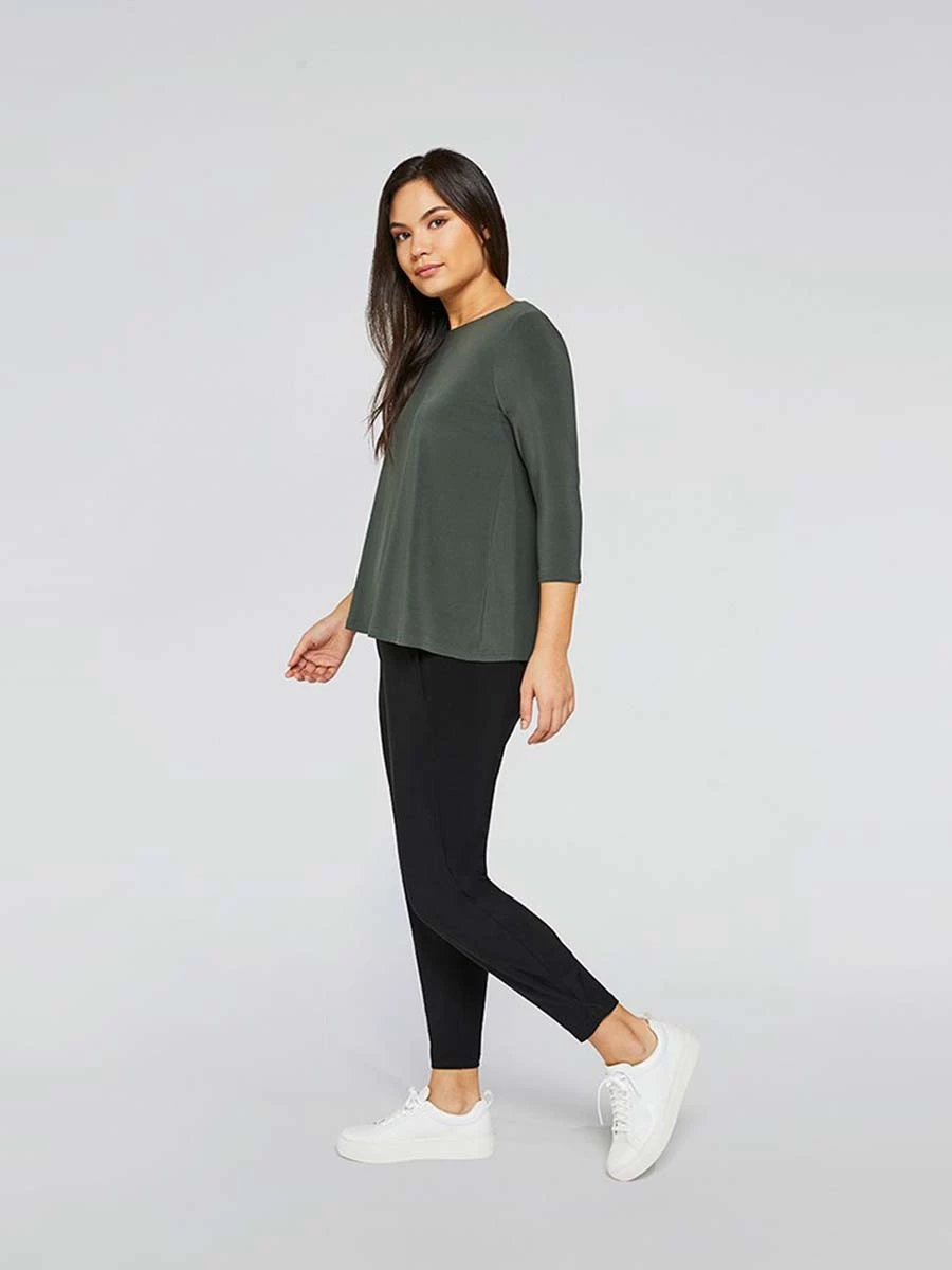 A wardrobe essential Sympli’s Trapeze Top has a relaxed slight a-line body with and even hemline, round necklace and three quarter sleeves.