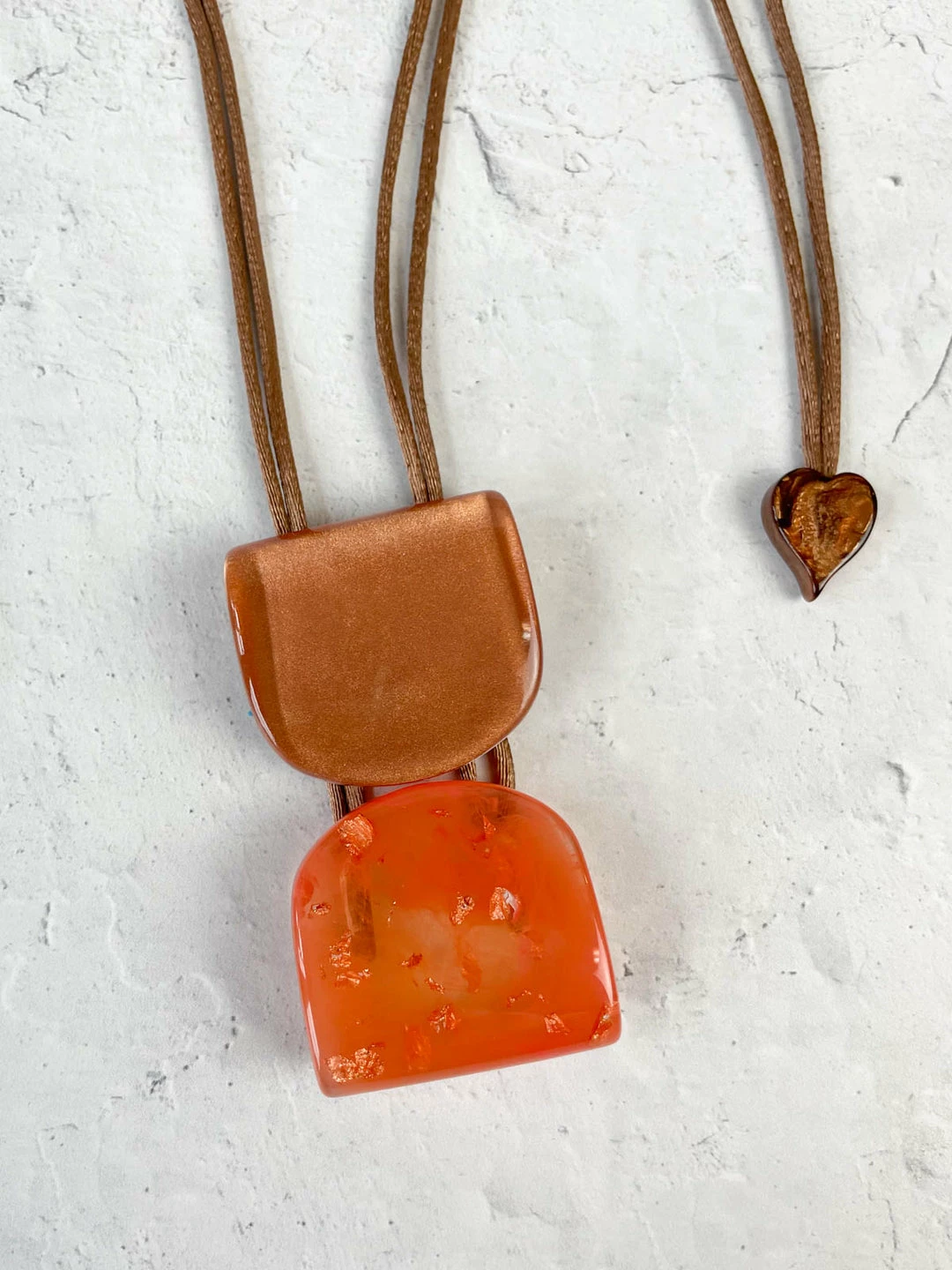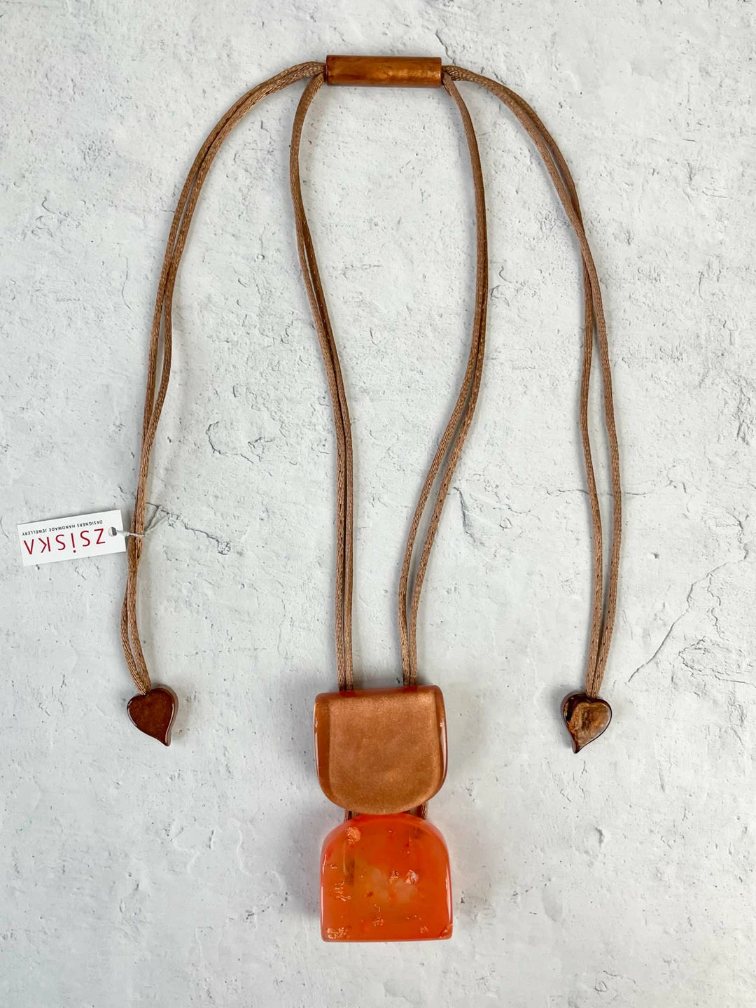 Zsiska Ava 2 Bead Pendant Necklace, Orange